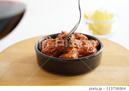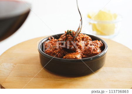 スペインのタパス アルボンディガス(トマトソースのスペイン風ミートボール
