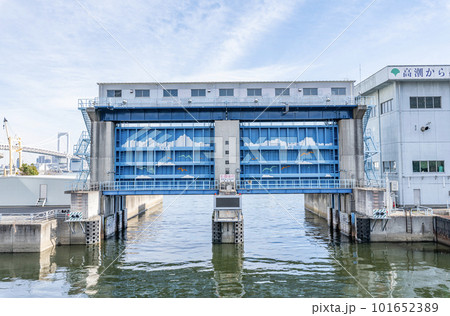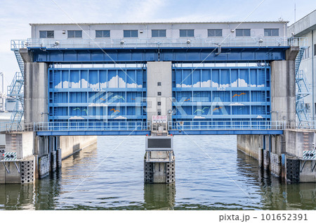 東京都港区 水害を防ぐ目的で作られた防災施設 排水機場のゲート