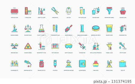 collection colorful icons tools equipment commonly found chemistry laboratory