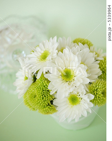 グリーンマムとホワイトマムのアレンジメント(左コピースペース)