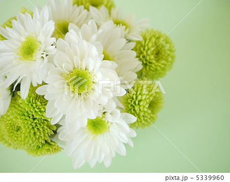 グリーンマムとホワイトマムのアレンジメント(左コピースペース)