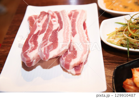 Raw pork on the bone or rib sliced with salt, spices and herbs