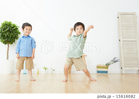 部屋でポーズをとる男の子