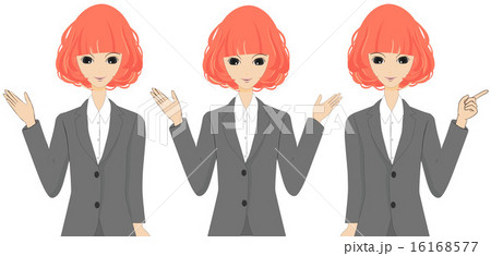 スーツの女性の全身ポーズのイラストセット
