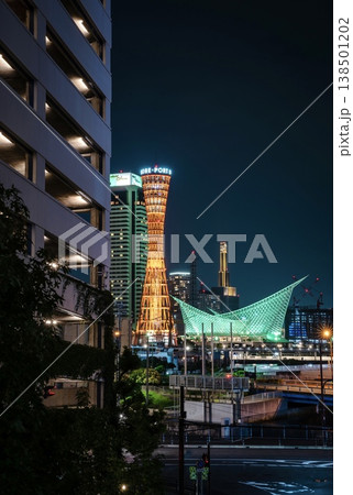 新しい観光スポッ夜のト金沢港クルーズターミナルライトアップ緑模様