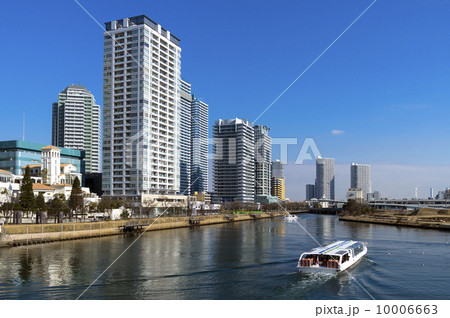 日本の横浜都市景観 横浜ベイクォーターや水上バス、ヨコハマポートサイド地区などを望む