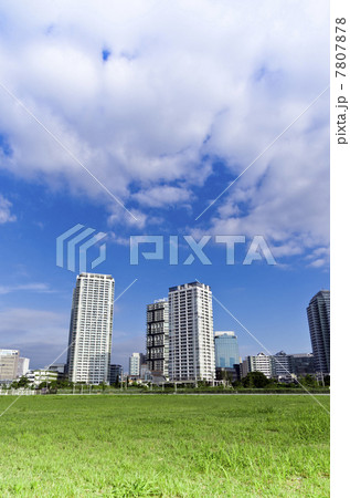 日本の横浜都市景観 横浜・リバーサイドのタワーマンション群などを望む