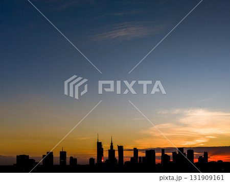 Panorama of the city, the panorama of Warsaw with a beautiful sunset