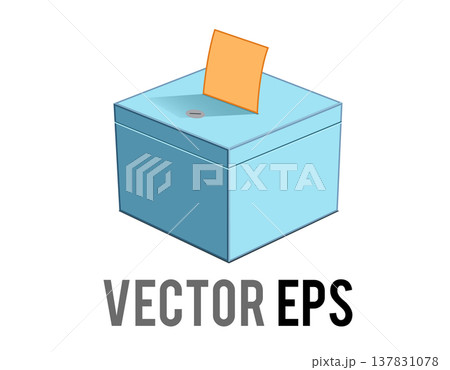Light blue ballot box flat icon with an orange ballot paper
