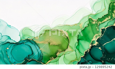 高級感のある薄くて淡いアルコールインクアート グリーン 余白 16:9サイズ AI生成素材