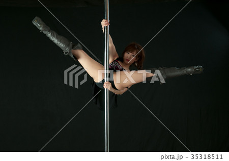 Young sexy pole dance woman stretching