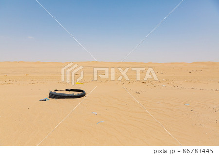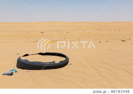 【イエメン】マアリブ、郊外に広がる砂漠に埋もれた廃タイヤ