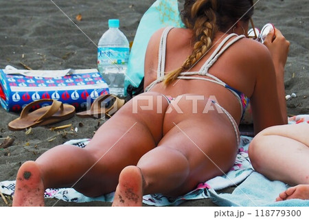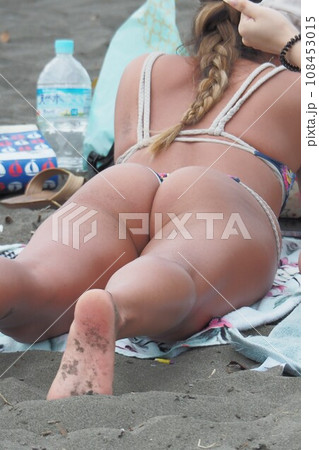 マイクロビキニ女子、ビーチにいる女性 夏風景
