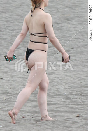 マイクロビキニ女子、ビーチにいる女性 夏風景