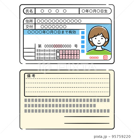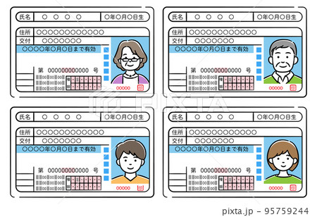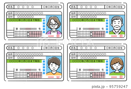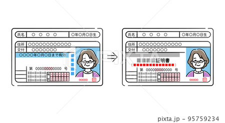シニア女性の運転免許証と運転経歴証明書のイラストセット