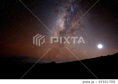 Hawaii ハワイ島 マウナ・ケア山の天の川と月の絶景