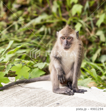 A macaca monkey, Khao Toh Sae Viewpoint on the Highest Hill in Phuket, Thailand