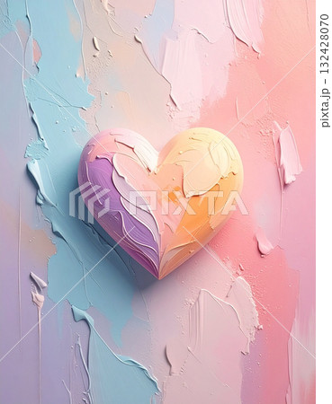 絵筆のタッチで描かれたパステル調の油絵風ハートとテクスチャバレンタイン背景