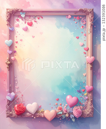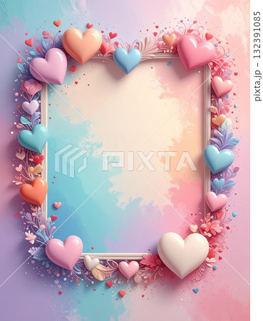 パステルカラーのぷっくりしたハートが囲むバレンタインの飾り枠