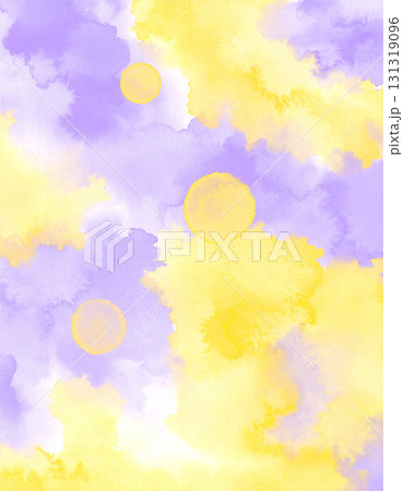 淡い黄と紫のグラデーションが広がる水彩テクスチャ背景