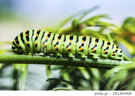 Swallowtail caterpillar (Papilio machaon), Butterflies of the family sailing on a sprig of dill