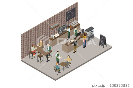 アイソメトリックイラスト:カフェ店員と客