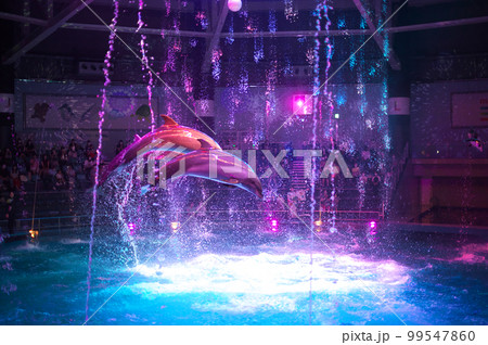 アクアパーク品川のイルカショー ナイトバージョンアクアパーク品川のイルカショー ナイトバージョン