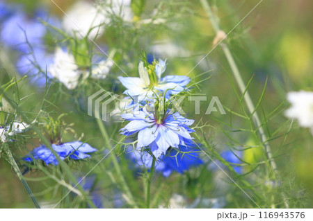 ブルーと白のニゲラの花