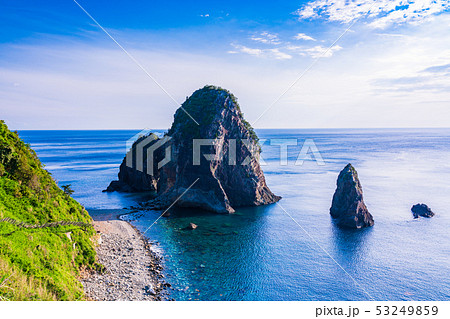 伊豆半島浮島海岸の奇岩、静岡県賀茂郡西伊豆町にて