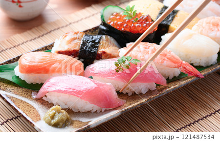 寿司下駄に盛り付けた握り寿司 盛り合わせ