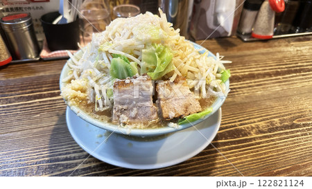 美味しそうな二郎系大盛ラーメン こってり マシ アブラ