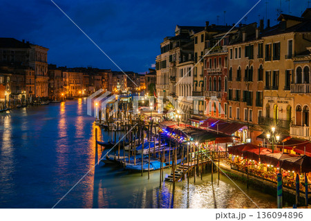 リアルト橋から望むベネチアの夜景と大運河の風景