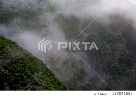 北海道室蘭市、海霧に包まれる断崖【6月】