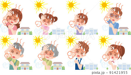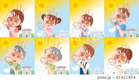 熱中症のイラスト_熱中症対策のイラスト_色々な年代の人の熱中症のイラスト