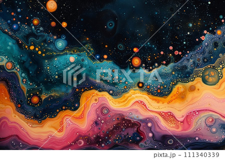 惑星の海のインク流: 色と形のシンフォニー AI画像 36
