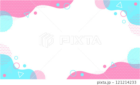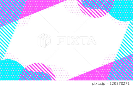 ポップな幾何学模様の背景素材 11 水色 ピンク レトロ風フレーム