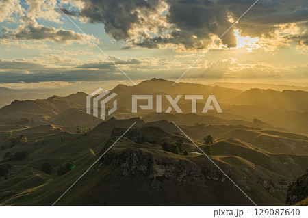 ニュージーランド ホークス・ベイ地方にあるテ・マタ・ピーク頂上からの風景と夕陽