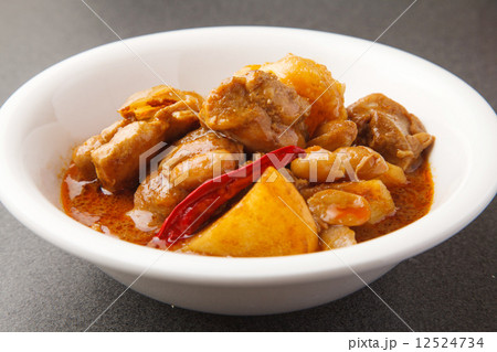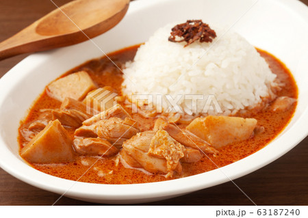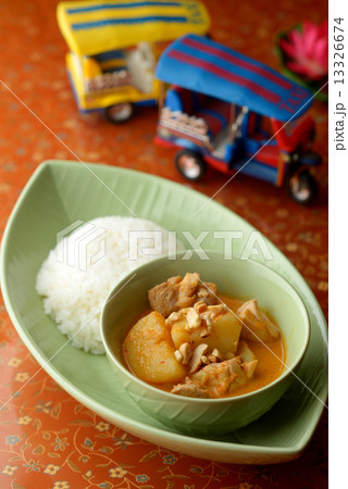 じゃがいもと鶏肉が入ったマッサマンカレー。タイ料理。