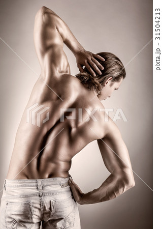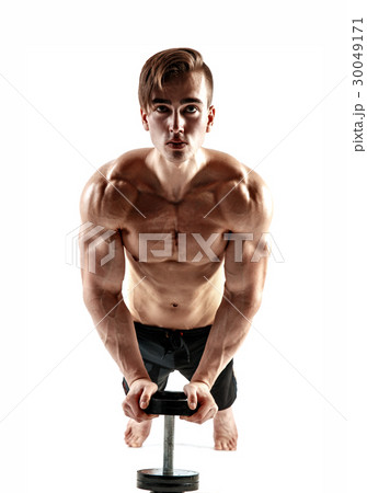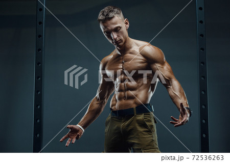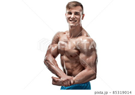 Young handsome ripped muscular man bodybuilder with perfect abs,