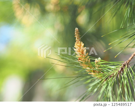 日本海海岸近くのクロマツの雄花