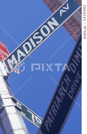 ニューヨーク・マンハッタン・マディソンアベニュー。高層ビルの谷間をまっすぐのびる街路。