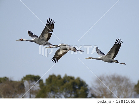 飛翔する出水のマナヅル