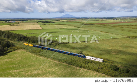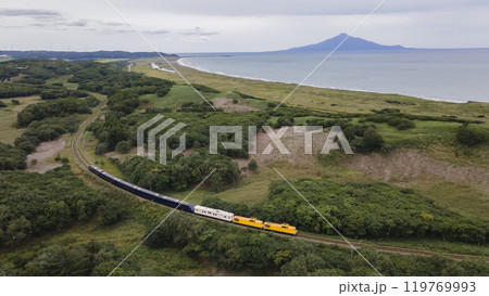 遠くに利尻島を望みながら走るTHE ROYAL EXPRESS