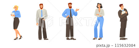 Cheerful Man and Woman Office Worker Vector Illustration Set