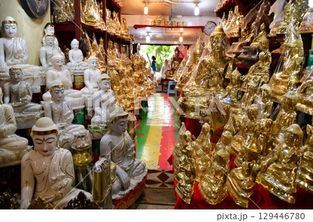 ミャンマー、マンダレー、マハムニ・パゴダ参道、仏像販売の店、観光土産