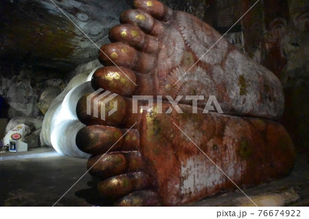 ランギリ・ダンブッラ石窟寺院の内部にある涅槃像【スリランカ】