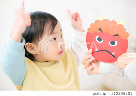 親子工作 鬼のお面を製作 節分工作 製作遊び