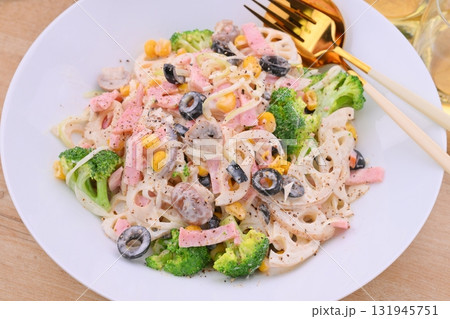 デパ地下風お惣菜に。れんこん、レンコン、蓮根とハムのマヨネーズサラダ、根菜マヨサラダ。