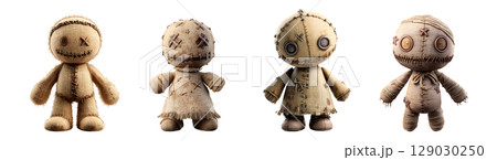 Set of cute voodoo dolls for Halloween, isolated on transparent background.