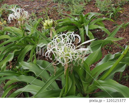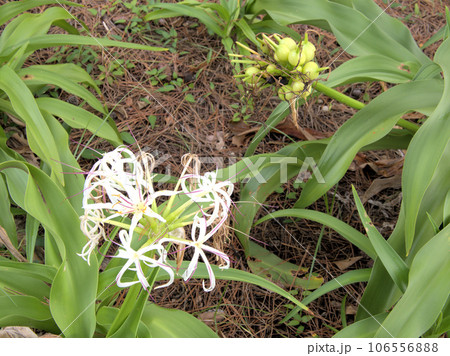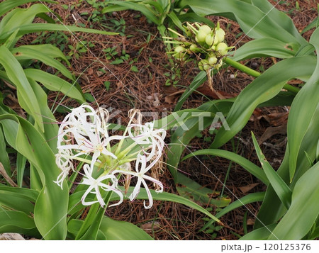 天草夕陽八景④ マリア像の夕陽付近に咲いていたハマユウとその実 熊本県天草市河浦町崎津
